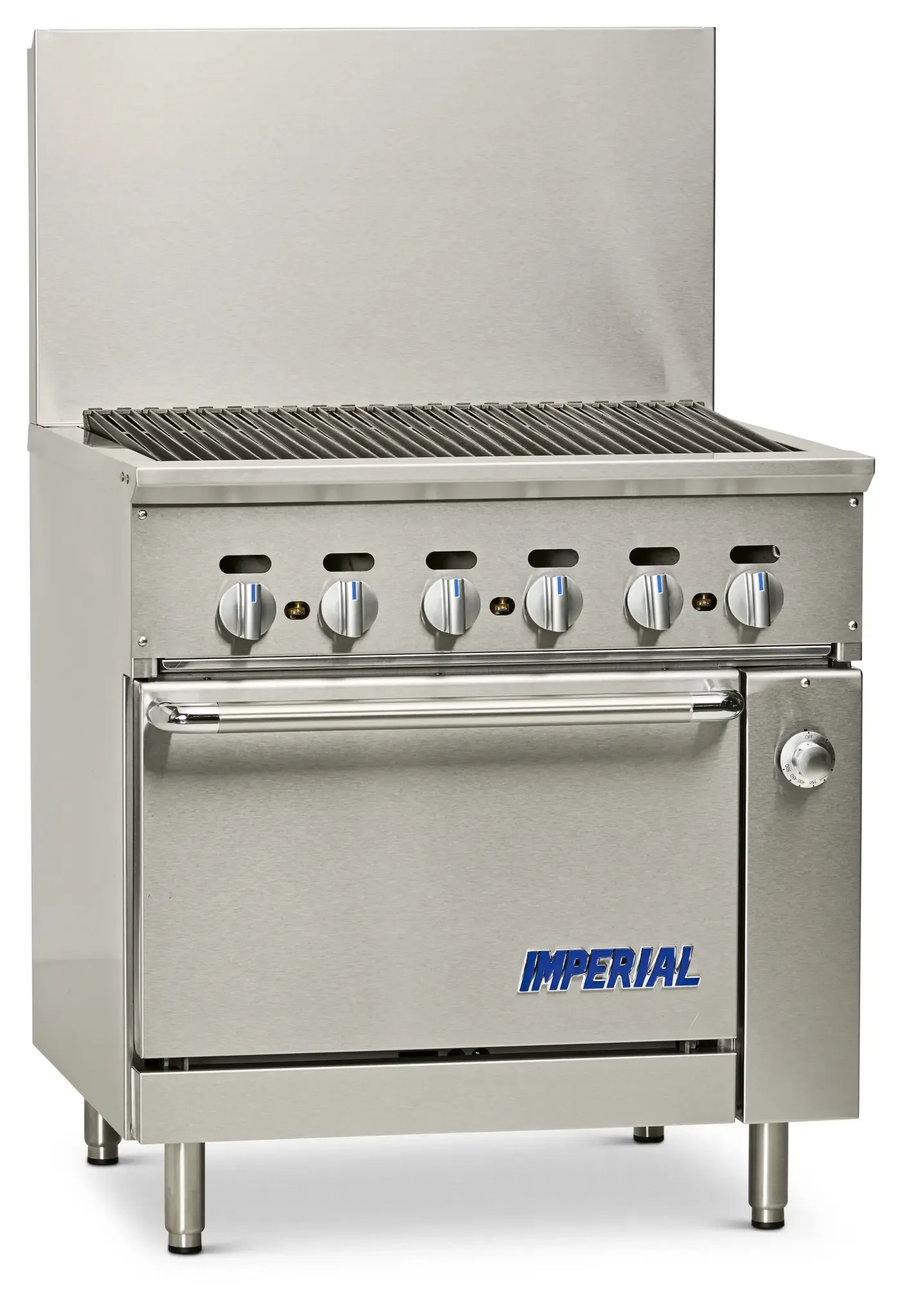 Master the art of flavor with the Imperial IR-24BR-120 Range. This 24" gas range is a perfect match for any restaurant kitchen, offering a charbroiler with cast iron radiants and top grates for exceptional cooking results. The space saver oven comes with a chrome rack, grease trough, and removable drip pan, making it easy to clean and maintain. The stainless steel front, sides, and high backguard not only provide durability but also add a sleek and professional look to your kitchen. With adjustable feet and 6" legs, this range can be easily customized to fit your kitchen layout. The Imperial IR-24BR-120 Range delivers an impressive 87,000 BTU of power, ensuring fast and efficient cooking. NSF and CSA Flame certified, this range guarantees safety and reliability. Elevate your culinary creations with the Imperial IR-24BR-120 Range.