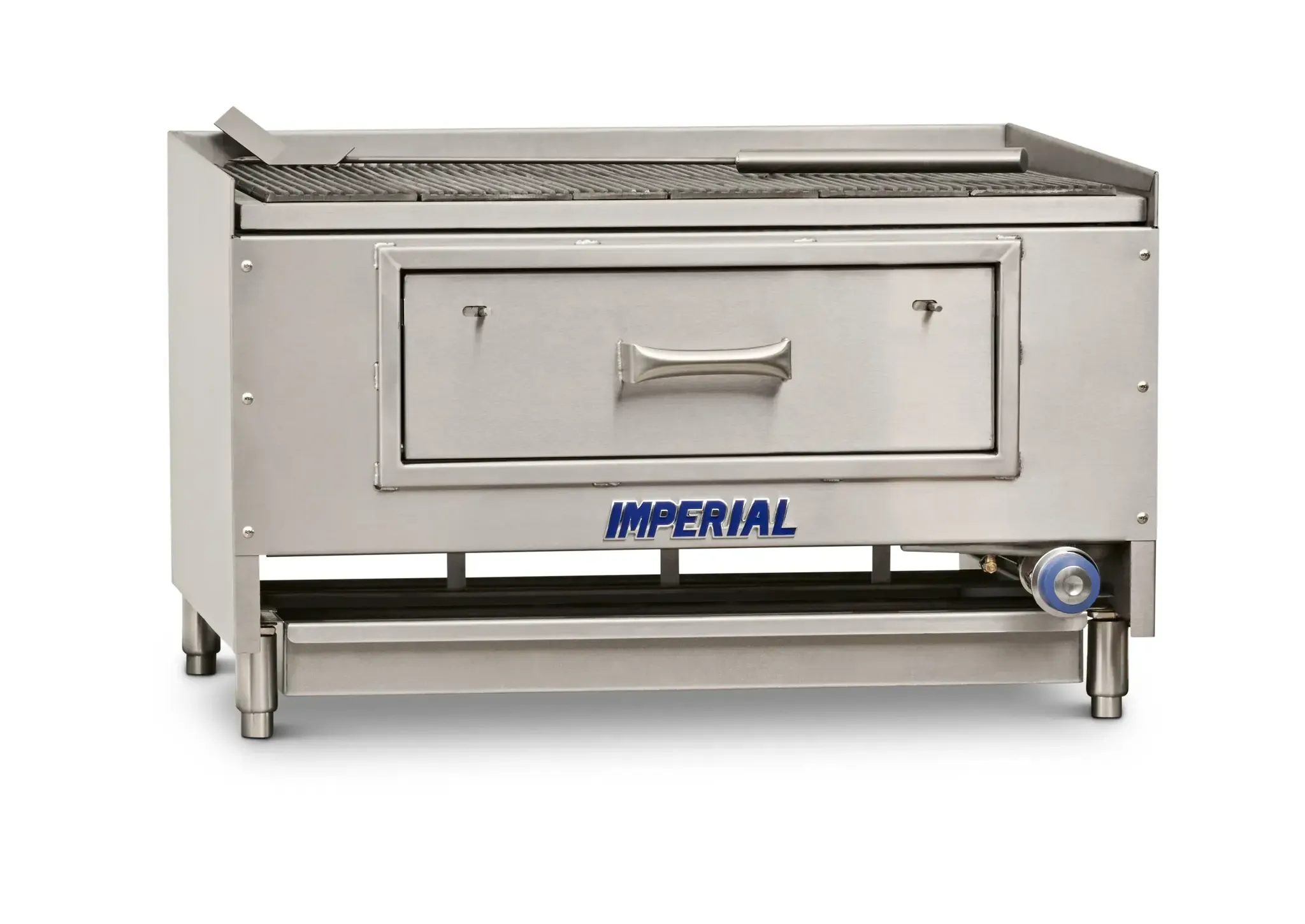 Culinary excellence in every dish starts with the Imperial MSQ-60 Charbroiler. This wood-burning charbroiler is a must-have for any commercial restaurant looking to elevate their grilling game. With its mesquite wood broiler and cast iron top grates, this 60" countertop unit delivers exceptional flavor and perfect grill marks to your dishes. The built-in gas log lighter ensures quick and easy ignition, while the removable grates make cleaning a breeze. Made with stainless steel front and sides, this charbroiler is not only durable but also adds a sleek and professional look to your kitchen. With a powerful 40,000 BTU, this NSF-certified charbroiler guarantees efficient and consistent cooking results. Whether you're grilling steaks, burgers, or vegetables, the Imperial MSQ-60 Charbroiler is the perfect tool to create mouthwatering dishes that will impress your customers and keep them coming back for more.