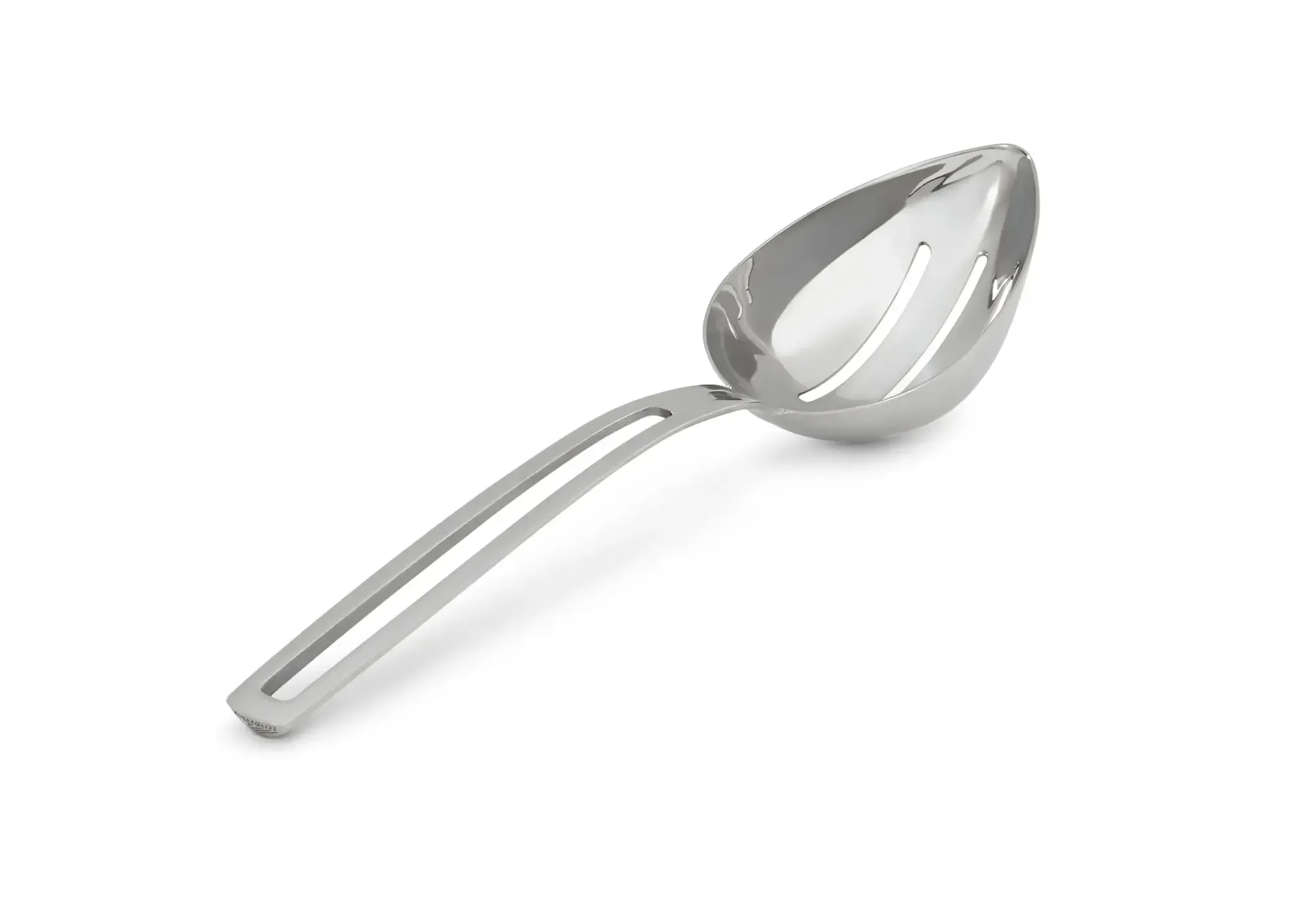 The Miramar contemporary oval serving spoon by Vollrath offers a stunning combination of strength and elegance. The unique shape and reliable construction are perfect for both front- and back-of-house use. This serving spoon is easy to identify, thanks to the capacity stamp on the handle, and ensures accurate portions. The ergonomic shape provides a comfortable grip and reduces hand fatigue, while the slotted design allows excess liquid to drain away during serving to prevent soggy or oversaturated results. The durable stainless steel construction offers years of use and is dishwasher-safe for quick, convenient cleaning.