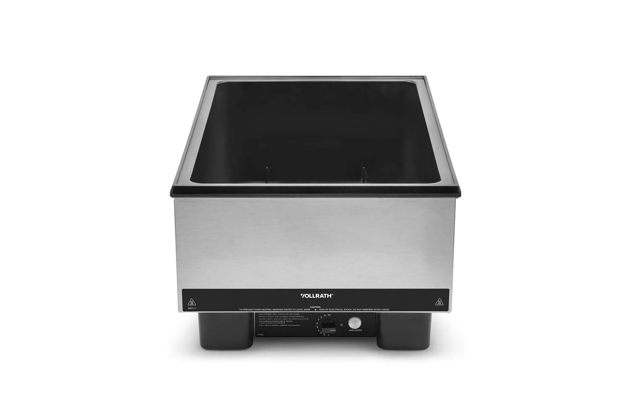 The full-size Model 1001 countertop warmer by Vollrath offers the lowest operating costs on the market. This countertop model features a direct-contact heating system, for improved performance and efficiency, and a dome heating element that uses up to 25 percent less energy by concentrating the energy into the well itself. The capillary tube thermostat supplies power only when it is needed, saving energy and reducing operational costs, and the heating element is cast in the unit for greater energy transfer. Recessed controls prevent accidental adjustments. A low-water indicator light keeps you informed, while a bottom-exit 6-foot power cord provides flexibility in countertop placement.